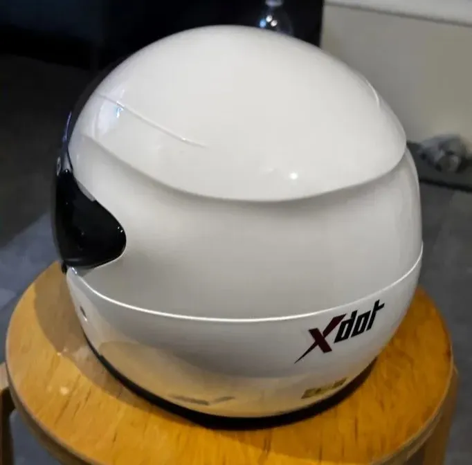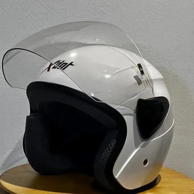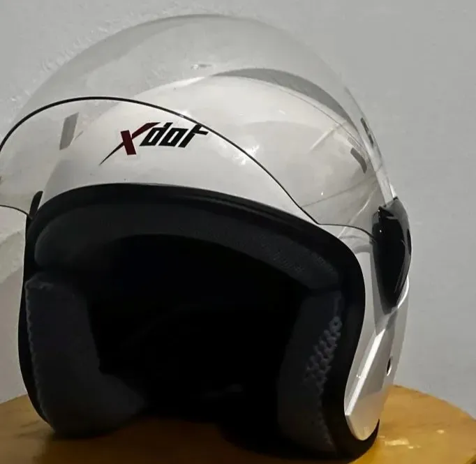 The motorcycle helmet available for rental is in excellent condition, thoroughly inspected and sanitized after every use to ensure maximum safety and hygiene. The exterior shell is free from cracks or damage, and the internal padding is clean, secure, and comfortable for extended wear. This helmet is designed to meet rigorous safety standards, making it a reliable choice for all riders. The adjustable strap ensures a snug fit, while the ventilation system promotes airflow to keep the rider cool. Whether you're commuting or touring, this helmet guarantees protection, comfort, and peace of mind.